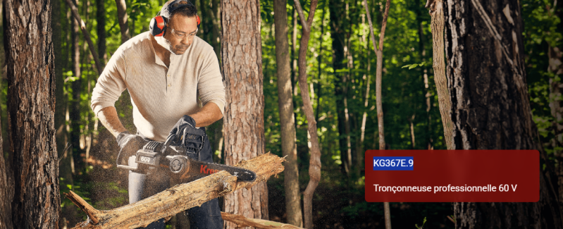 Équipée d'un moteur sans balais de 2,5 kW, la KG367E.9 permet des coupes fluides et efficaces avec une vitesse de chaîne de 22 m/s. Conçue pour des performances dans des conditions exigeantes, cette tronçonneuse excelle dans la réalisation des coupes précises et de qualité dont les professionnels ont besoin.